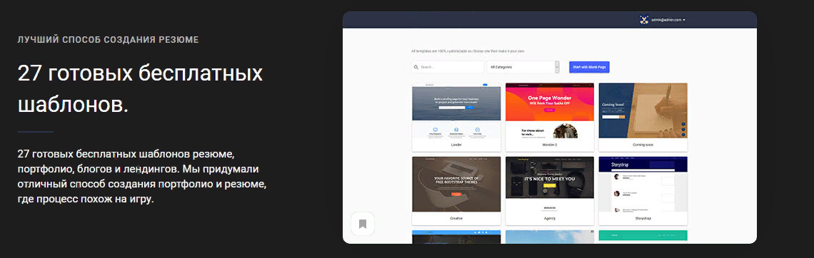 27 готовых бесплатных шаблонов резюме, портфолио, блогов и лендингов. Мы придумали отличный способ создания портфолио и резюме, где процесс похож на игру.