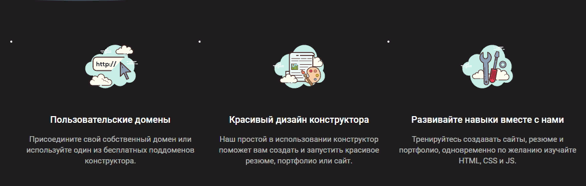 Тренируйтесь создавать сайты, резюме и портфолио, одновременно по желанию изучайте HTML, CSS и JS.